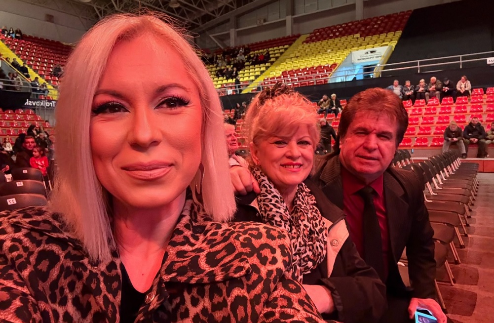 Ане Стевковска-Маневска сподели слика со фолк-пејачот Орце и со водителката Дракче, нејзините родители како заедно уживаат во концертот на Влатко Миладиновски кој се одржа вчера во Арената „Борис Трајковски“.