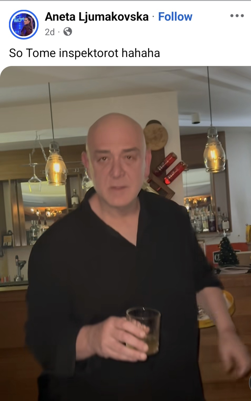 Познатата пејачка Анета Љумаковска објави видео од нејзин настап, на кој гостин бил токму тој, а веселејќи се и играјќи, тој го имитирал познатиот лик од серијата „Преспав“, инспекторот Томе.