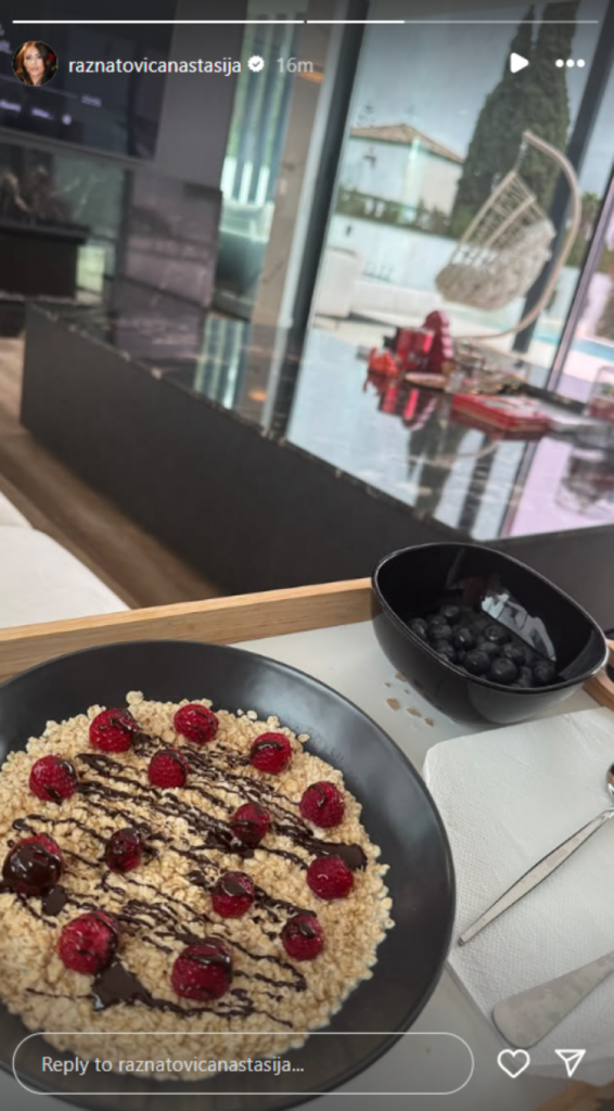 Пејачката на Цеца Ражнатовиќ, Анастасија строго се грижи за својата исхрана, што значи дека секој ден подготвува здрави оброци. Анастасија често покажува дека утрото го започнува во теретана, а сега покажа дека има здрава слатка ужина непосредно пред ручек.