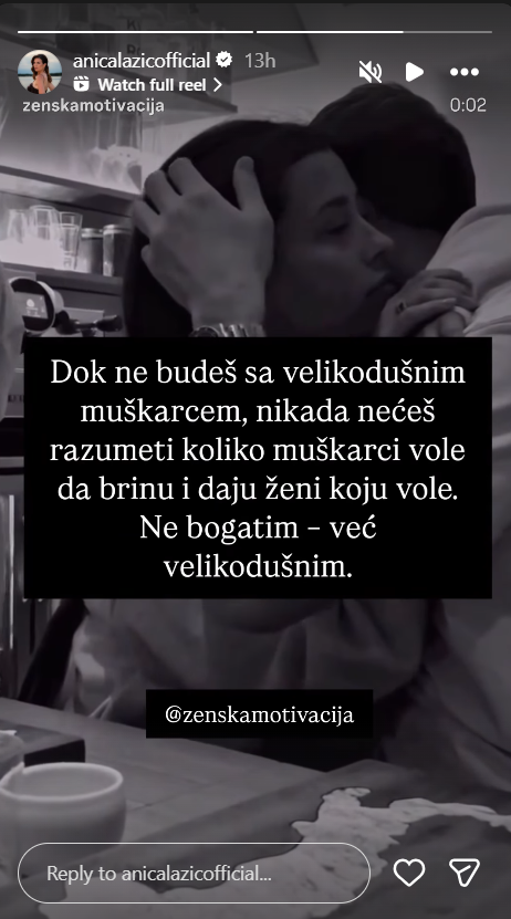Откако позираше и се фотографираше пред огледалото, 39-годишната девојка на актерот Лазар Ристовски објави приказна на Инстаграм со интересна порака, со која очигледно се идентификуваше.