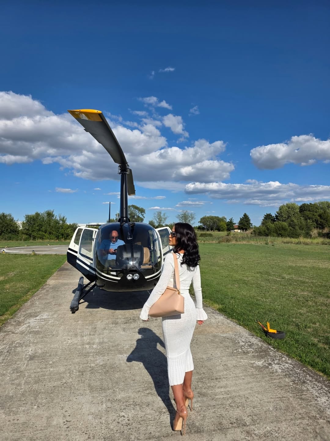 Пред тоа, таа објави неколку фотографии пред хеликоптерот, а нејзиниот стајлинг го привлече вниманието.