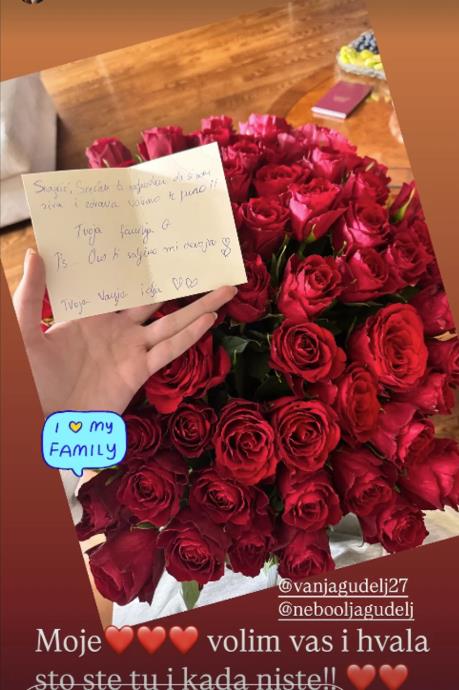 Имено, Анастасија доби безброј честитки и пораки на Инстаграм, кои ги сподели со сите, а го покажа и подарокот што го добила од нејзината свекрва Оља и нејзната золва, Вања Гудељ.