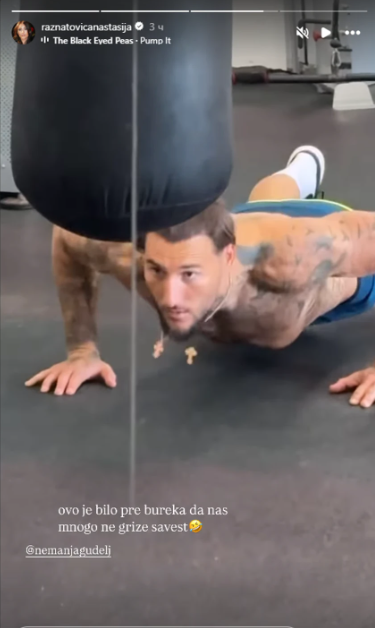 Сега, пејачката сподели видео од теретана на Инстаграм, на кое се гледа како таа и нејзиниот сопруг, фудбалерот Немања Гудељ, вежбаат заедно. Додека таа позираше пред огледалото, тој се потеше од тренингот.