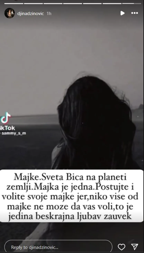 – Мајка. Свети суштества на планетата Земја. Мајката е една. Почитувајте ги и сакајте ги вашите мајки, бидејќи никој не може да ве сака повеќе од вашата мајка. Тоа е единствената бескрајна љубов засекогаш – се вели во цитатот.