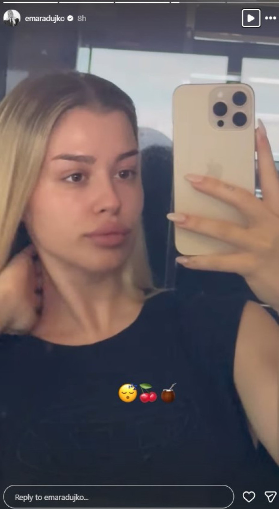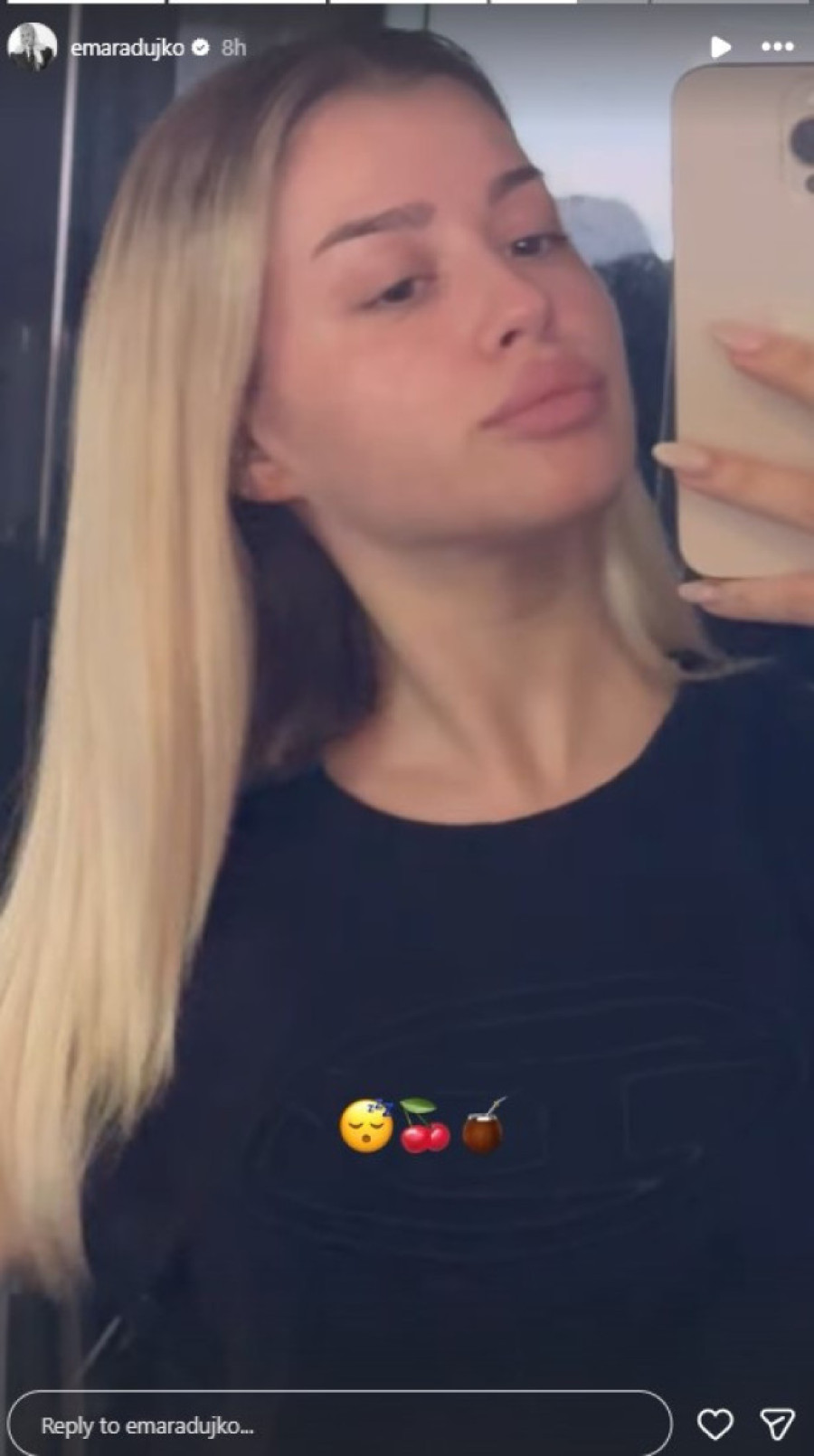 Ема позираше пред огледало во црна маица, без никакви филтри и со спуштена коса. Ова видео покажа друга страна на пејачката и ја откри нејзината природна убавина, што предизвика воодушевување кај нејзините следбеници на социјалните мрежи.