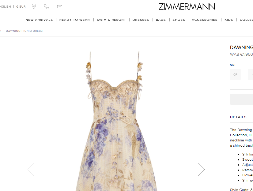 Северина го носеше „The Dawning Picnic Dress“ од „Цимерман“, направен од свила и лен, со нежен цветен дезен, корсетски врв и лелеава здолниште. Фустанот во нијанси на виолетова и златна совршено ја истакна нејзината фигура и женственост.