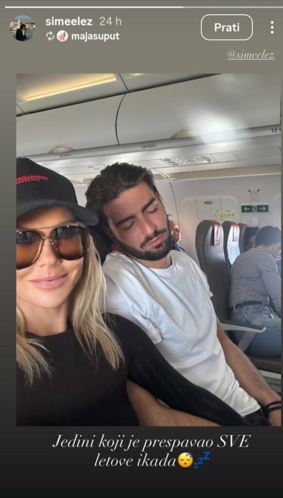 Дека веќе станале вистински патнички тандем покажува и најновата објава на Маја од авионот, каде што позира насмеана со очила за сонце, додека Шиме, кого го држи за рака, спие на седиштето до неа.