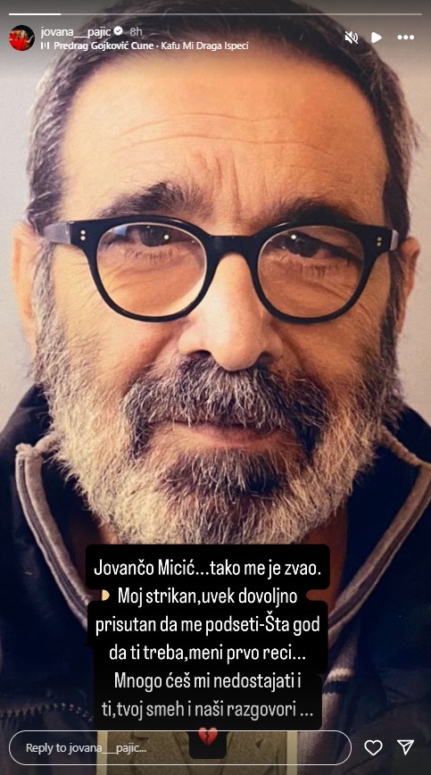 Јована Пајиќ преку социјалните мрежи објави дека останала без нејзиниот чичко, со кого очигледно била многу блиска и затоа неговата смрт прилично ја погодила.