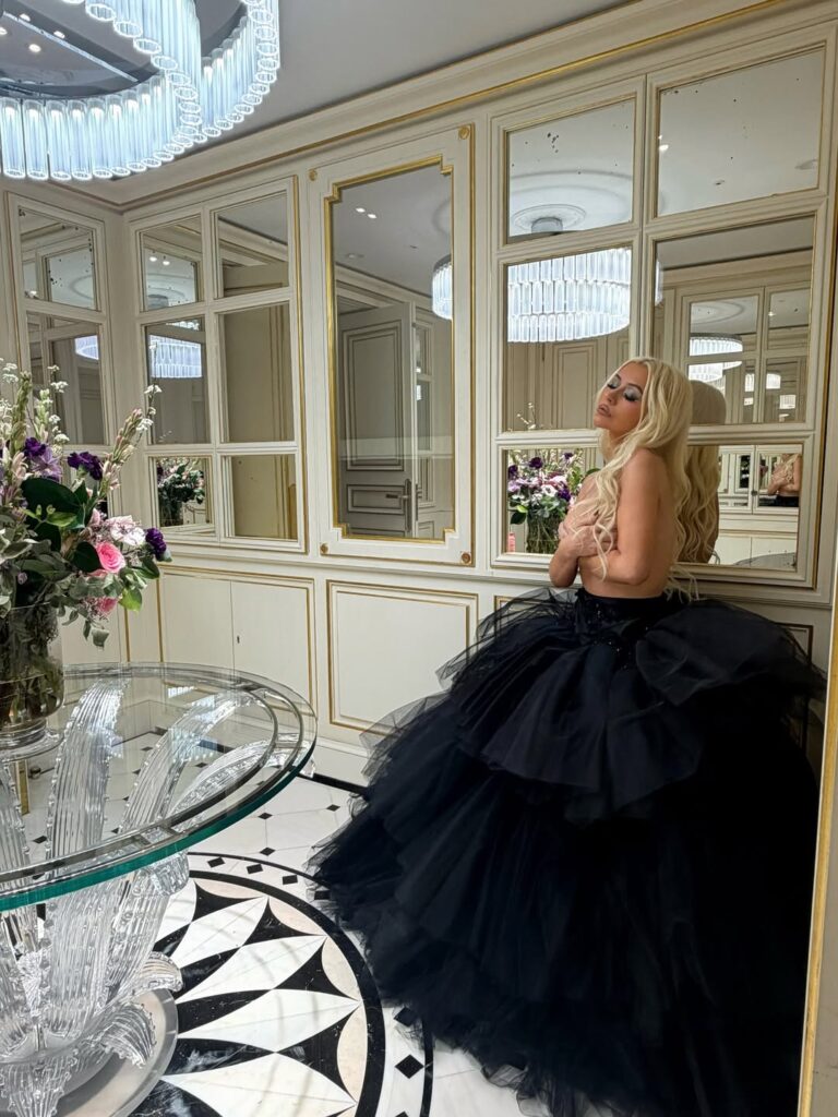 Пејачката позираше во луксузен хотел во Париз, облечена само во тул-ѕвончесто здолниште, со пуштена руса коса и заводлива шминка со „зачадени“ очи и неутрална боја на кармин. Стајлингот го надополни со впечатлив накит кој дополнително го нагласи гламурот.