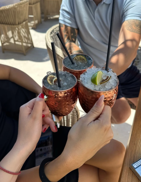 На фотографиите ја гледаме како позира во деколтеа, но и како пие коктели и вино и ужива во добра храна.