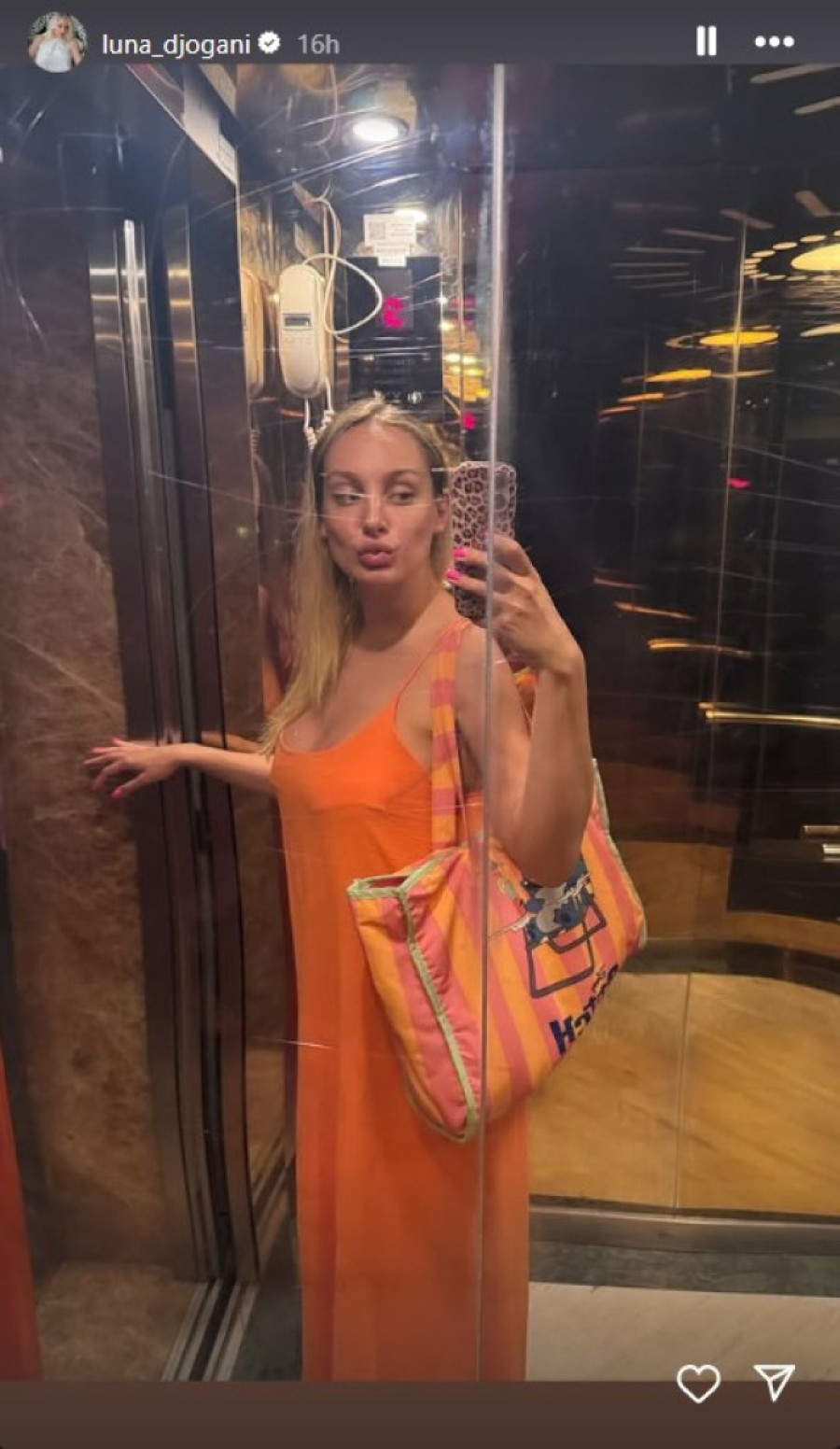 А за модниот дел од вечерта, Луна се истакна одлично. Таа се појави во долг, портокалов фустан кој ја истакнуваше нејзината фигура, а го искомбинира со чанта во иста боја.