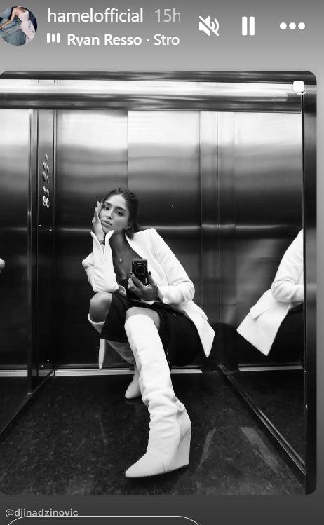 Џина направила цел сет фотографии во лифтот и ги објави на својот Инстаграм, кои ги сподели и нејзината мајка.