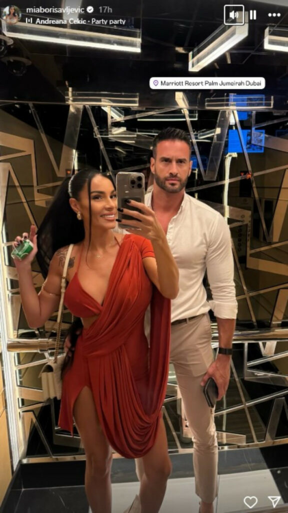 Миа Борисављевиќ и нејзиниот сопруг, со кого има две ќерки, Бојан Грујиќ, моментално живеат во Дубаи, од каде редовно се рекламираат преку социјалната мрежа Инстаграм.