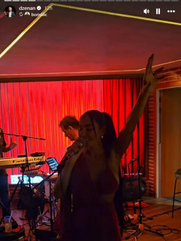 Вчера пејачката покажа како се забавувала на настапот на нејзиниот колега Џенан Лончаревиќ, кој пеел во овој град.