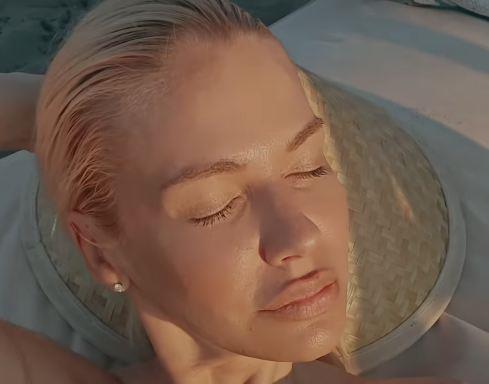 Пејачката ги спушти прерамките од костимот за капење за да се сонча, а на лицето немаше ни трошка шминка, покажувајќи ја својата природна верзија.