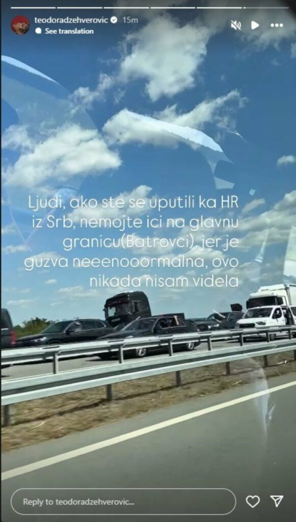 Одморот на Теодора Џеверовиќ завршил, а пејачката се упатила кон Србија. Меѓутоа, големите метежи на границата ја навеле јавно да им се обрати на своите следбеници и барем малку да им го олесни патувањето на оние што го планираат своето патување во наредните денови.