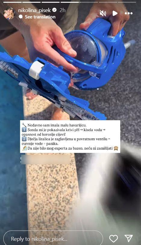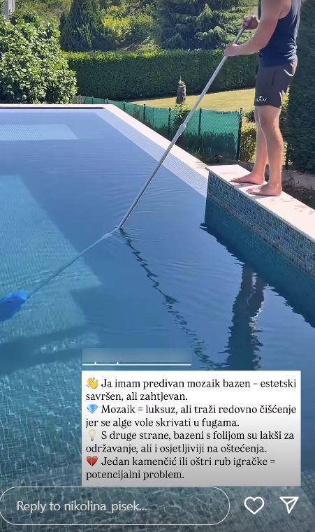 – Загреб има повеќе од 3.000 приватни базени и сите изгледаат фантастично на фотографиите. Но, што се случува зад сцената? Сопственоста на базен не е само луксуз – туку е и одговорност. И како. Имам прекрасен мозаичен базен, естетски совршен, но бара многу. Мозаикот е луксуз, но бара редовно чистење бидејќи алгите сакаат да се кријат во споевите. Од друга страна, базените со фолија се полесни за одржување, но и почувствителни на оштетување. Каменче или остар раб на играчка е потенцијален проблем – објасни Николина и додаде:
