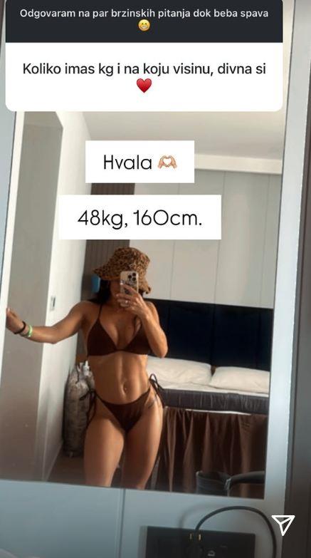 Сопругата на српскиот фолк пејачот Дарко Лазиќ, Катарина, одговарала на прашањата на следбениците на Инстаграм, па ѝ открила на јавноста и шокантни детали за својата тежина. Катарина истакнува дека не била задоволна кога на вагата видела дека тежи 43 кг, па затоа презела мерки.
