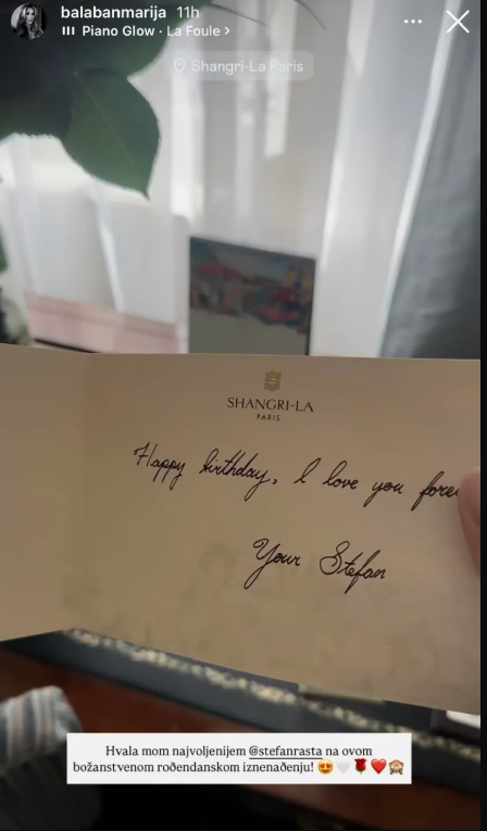 – Среќен роденден, те сакам засекогаш. Твојот Стефан – напишал Раста, покажувајќи ја својата романтична страна.