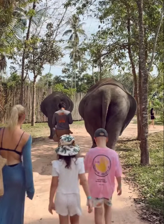 Малку подоцна, тие отидоа на прошетка и со слоновите.