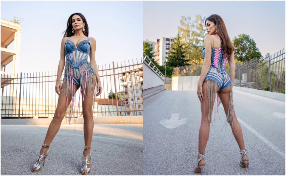Пејачката сподели фотографии на социјалните мрежи на кои го покажа ова уникатно парче облека. Костимот се состоеше од тексас корсет со проѕирни делови што го истакнуваа нејзиното деколте.