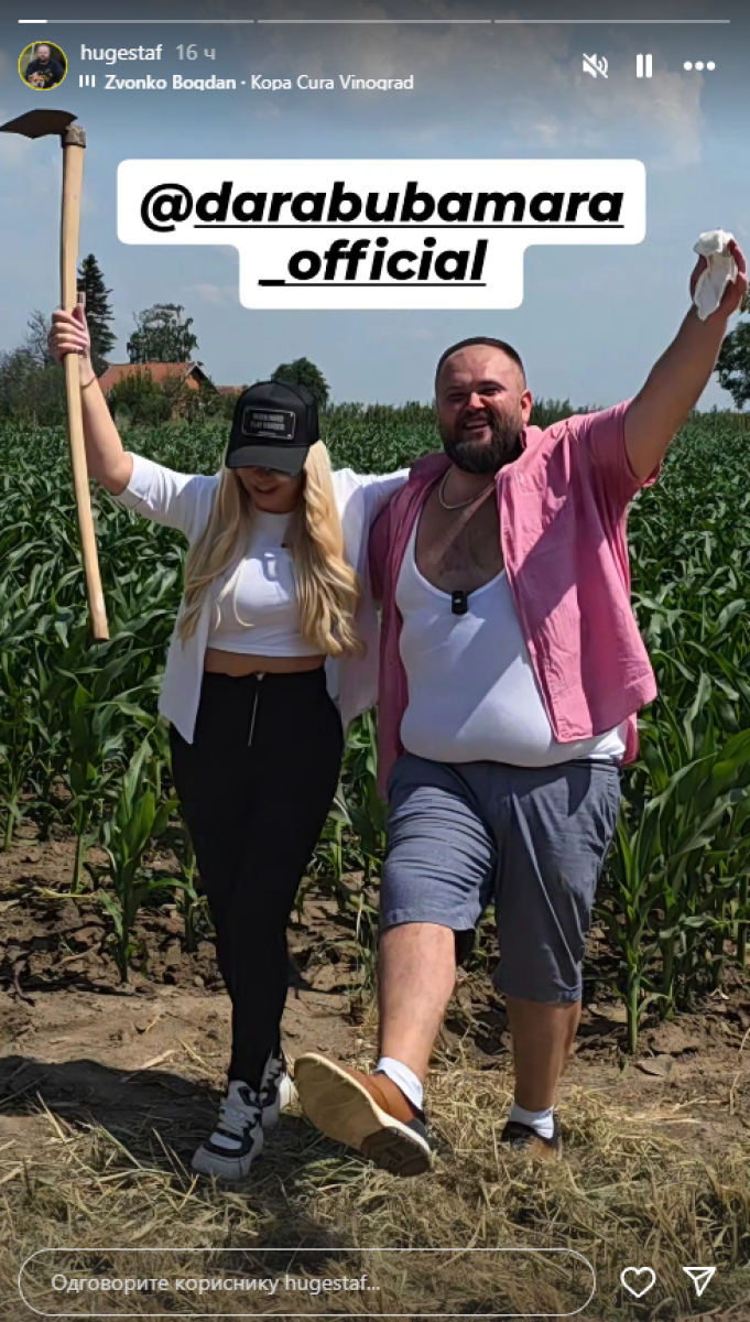 На фотографијата, пејачката може да се види како позира со јутјуберот, Ненад Живковиќ, попознат како Хугестаф, на нива со пченка.