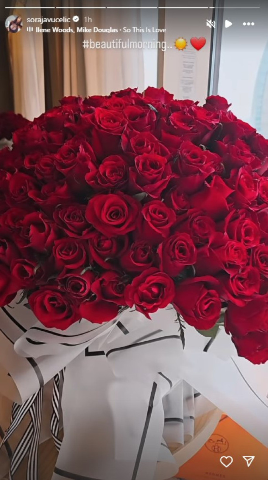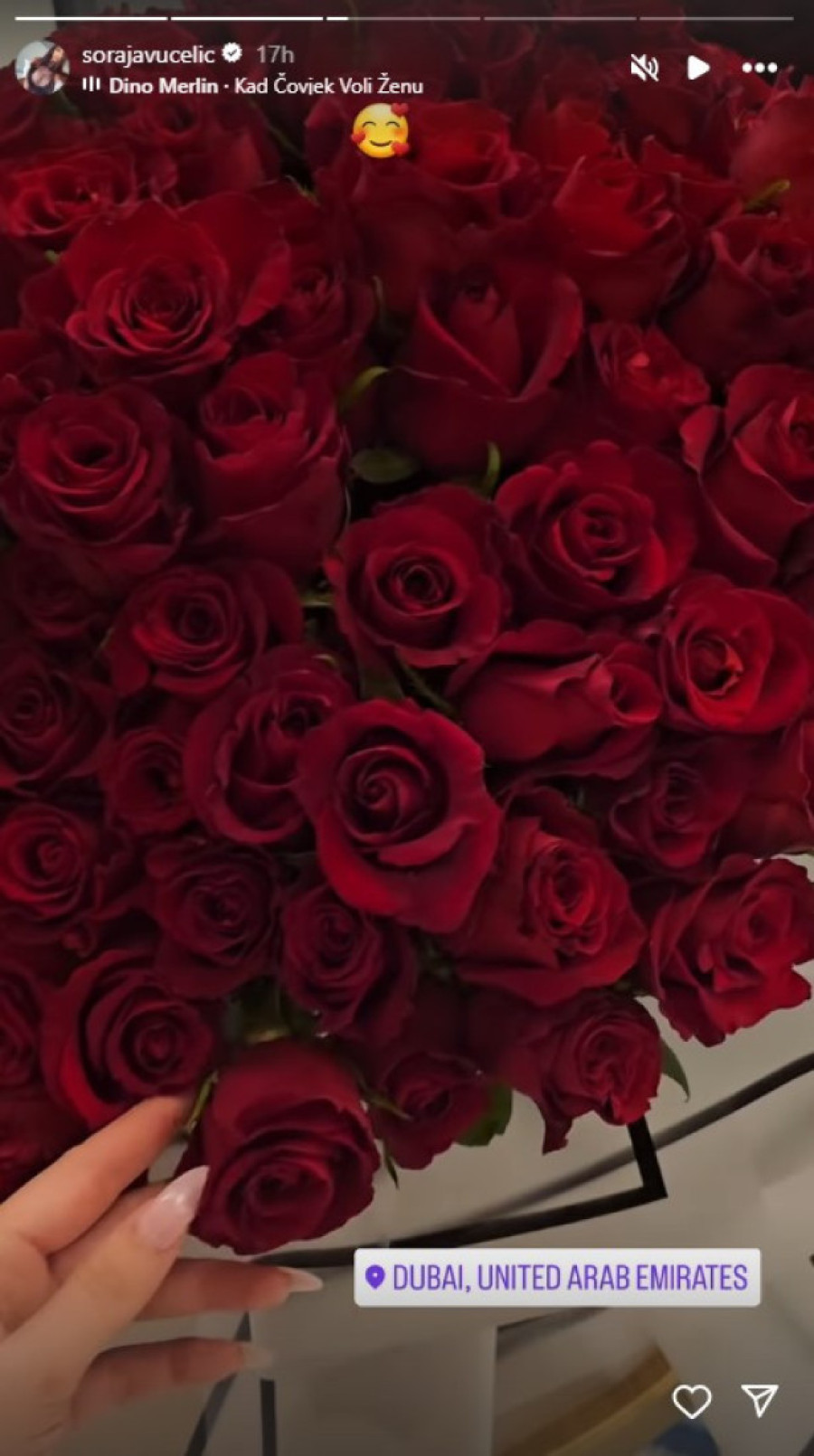 Овој пат, Сораја од Дубаи ги израдува своите следбеници со фотографии кои сведочат за луксузниот почеток на нејзиниот ден. Имено, штом ги отвори очите, ја пречека вистински романтичен гест, дури 101 црвена роза. Импресивен букет го зазеде централното место во собата, а Сораја не го криеше своето воодушевување и го сподели јавно.