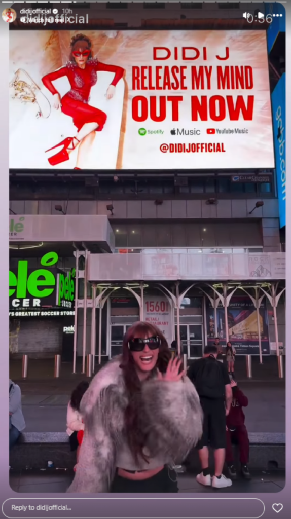 Пејачката Дијана Јанковиќ, попозната како Диди Џеј, се пофали дека нејзината фотографија е на огромен билборд на Тајмс Сквер во Њујорк.