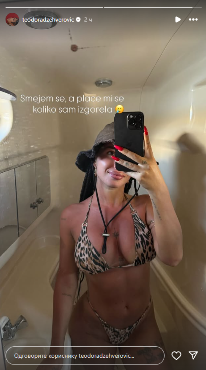 „Се смеам, но ми се плаезатоа што сум изгорена“, напиша Теодора на Инстаграм.