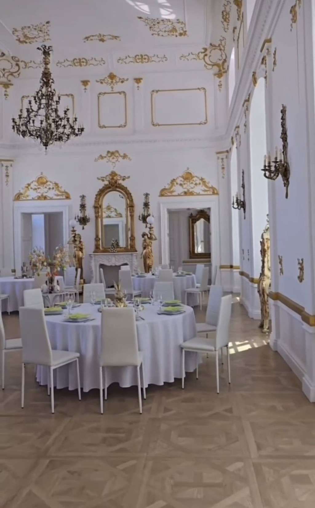 Во видеото можеме да видиме луксузна сала во класичен барокен стил: високи тавани со златни орнаменти, импозантни лустери и огледала со богато украсени рамки. Сè зрачи со елеганција и антички луксуз.