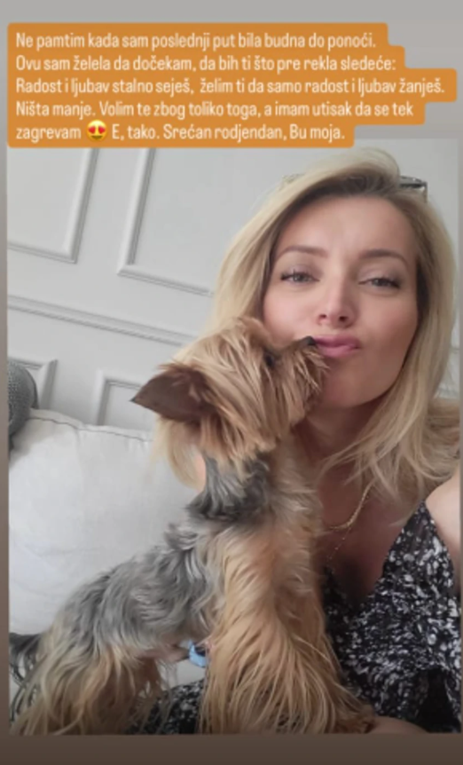 „Не се сеќавам кога последен пат бев будна до полноќ. Сакав да го чекам ова, за да можам што поскоро да ти го кажам следново: Секогаш сееш радост и љубов, ти посакувам само радост и љубов да жнееш. Ништо помалку. Те сакам за толку многу работи, и имам впечаток дека само се загревам. Па ете. Среќен роденден, моја Бу“, напиша Марија Килибарда.