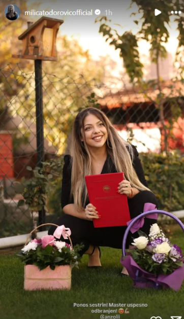 – Гордост на сестра. Магистерскиот труд успешно го одбрани – напиша Милица на Инстаграм.