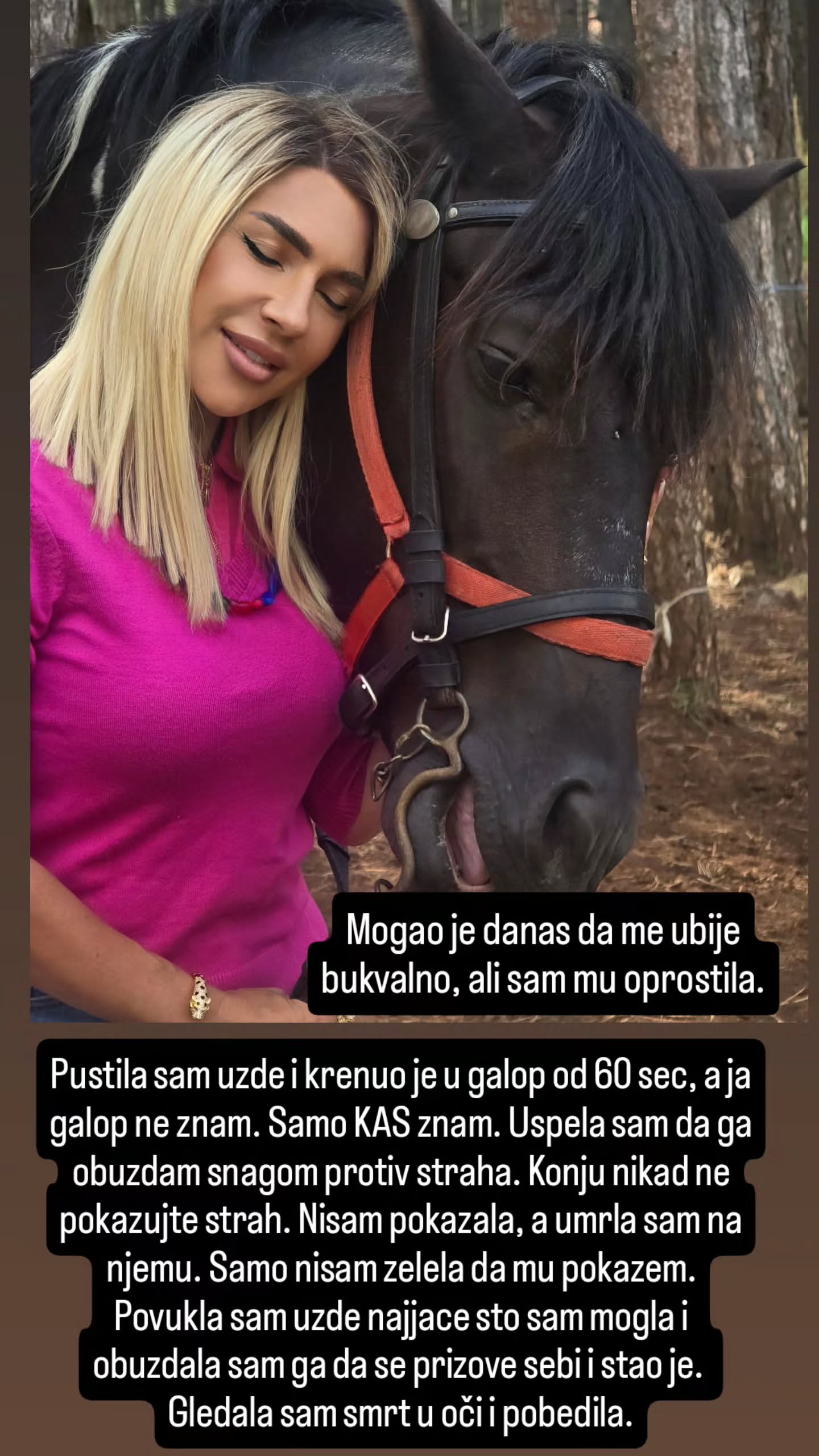 – Денес ја погледнав смртта во очи и победив – напиша Јована на почетокот на емотивната објава, а потоа откри дека за време на јавањето доживеала многу ризична ситуација што лесно можела да заврши трагично.