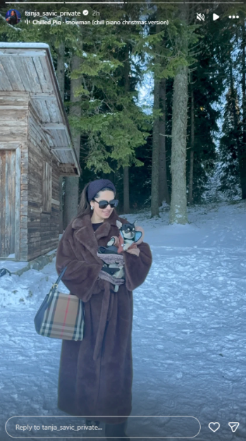 На друга фотографија која Тања ја објави на својот инстаграм-профил, таа позираше во крзнено палто, држејќи го своето кученце во рацете.