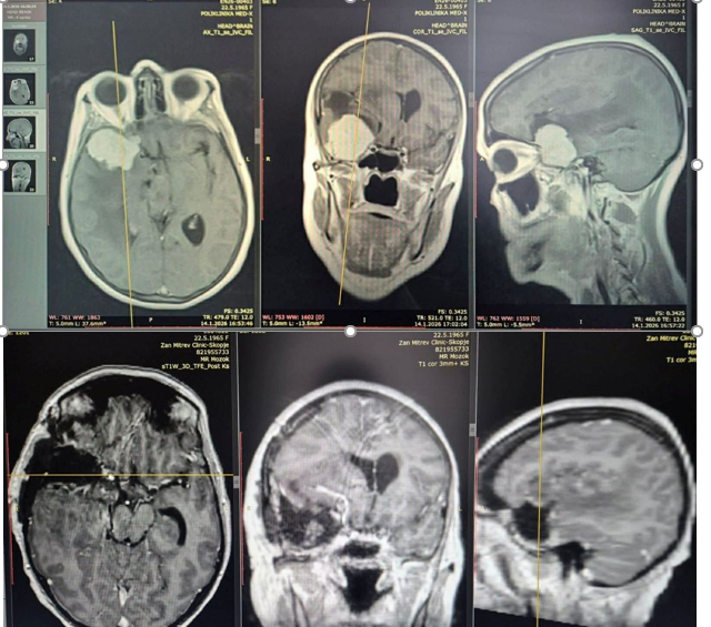 По направените радиолошки иследувања со нуклеарна магнетна резонанца, кај пациентката беше дијагностициран туморски процес во мозокот, по што следуваше индикација за оперативно лекување.