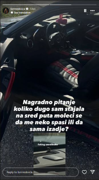 – Наградно прашање, колку долго стоев среде патот молејќи се некој да ме спаси или сама да излее? – напиша Бресквица.