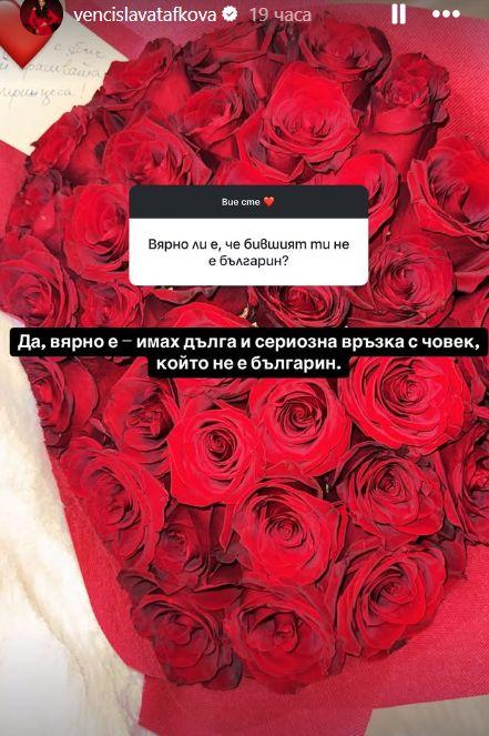 „Да, вистина е! Имав долга, сериозна врска со личност која не е од Бугарија!“ Ова сензационално го откри Мис Бугарија 2020 Венцислава Тафкова. Нејзината исповед за прв пат фрла светлина врз нејзиниотприватен живот. Убавицата не сака да споделува детали од својот интимен свет и никогаш не покажала ниту едно од своите момчиња, пишува „Хот Арена“.