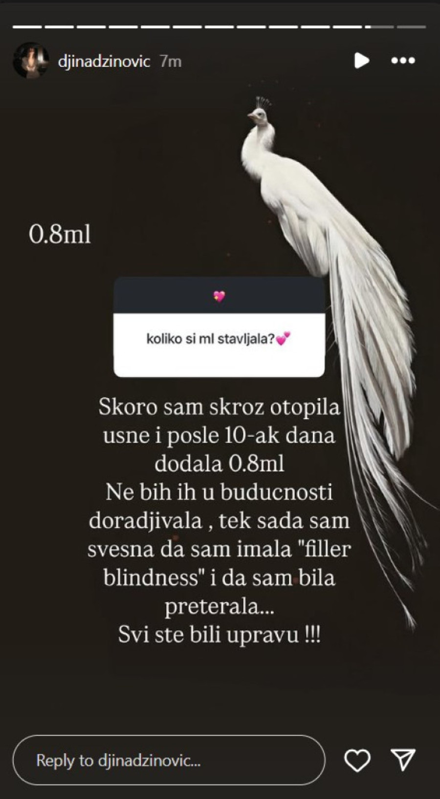 Џиновиќ одговараше на прашањата на своите следбеници преку Инстаграм, а едно од нив беше за корекција на усните:
