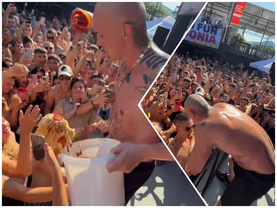 Стави палачинка врз главата на еден обожавател во публиката, потоа рендаше сирење, додаде сос, па малку се напи од сосот и го плукна врз палачинката – односно врз главата на момчето.